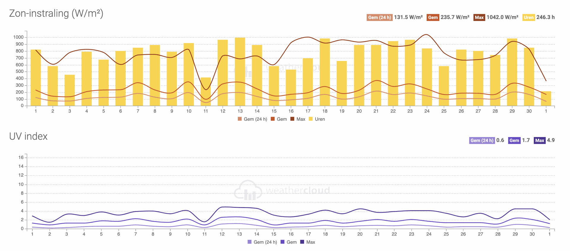 Gedurende april was de zon gul met haar stralen, met een totaal van 246,3 uur aan zonneschijn. Deze heldere momenten boden de perfecte gelegenheid om te genieten van de ontluikende natuur en buitenactiviteiten.