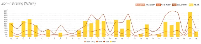 - Aantal vorstdagen (minimum onder 0 °C) deze maand: 0 dagen