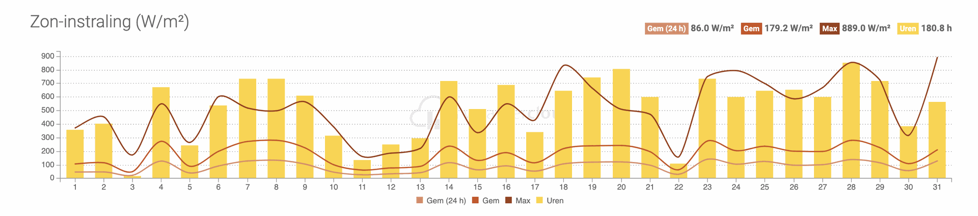 In tegenstelling tot februari, waarin we 180,8 uur zonneschijn mochten verwelkomen, was maart iets wisselvallerig als het op zonneschijn aankwam. De hoeveelheid zon die we hebben gezien, fluctueerde met de veranderende weersomstandigheden.