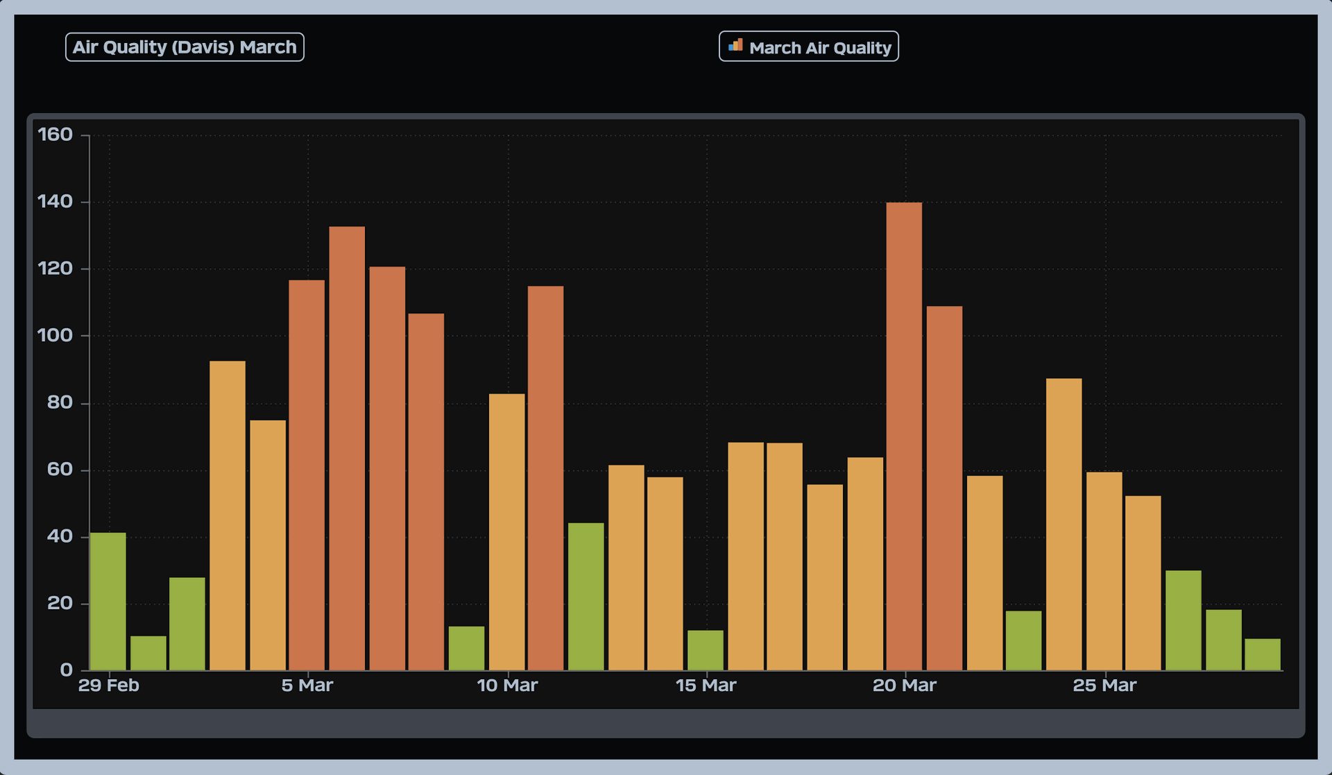 Wat betreft de luchtkwaliteit in Tielt gedurende maart, bleef deze over het algemeen goed. De regelmatige neerslag droeg bij aan het schoonspoelen van verontreinigende stoffen uit de atmosfeer, waardoor de luchtkwaliteit over het algemeen bevorderlijk was voor een gezonde leefomgeving.