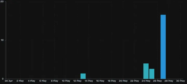 Waar het weer eerst zomers droog bleef, met van 1 tot 11 mei geen druppel regen, sloeg het tij aan het einde van de maand. Pas op 13 mei viel er zo’n 2 mm, gevolgd door opnieuw een droge periode tot 23 mei. Daarna kwam de regen met kracht terug.